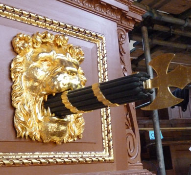 The Provost's rostrum regilded during refurbishment of some Sheldonian Theatre gilding in October 2010.